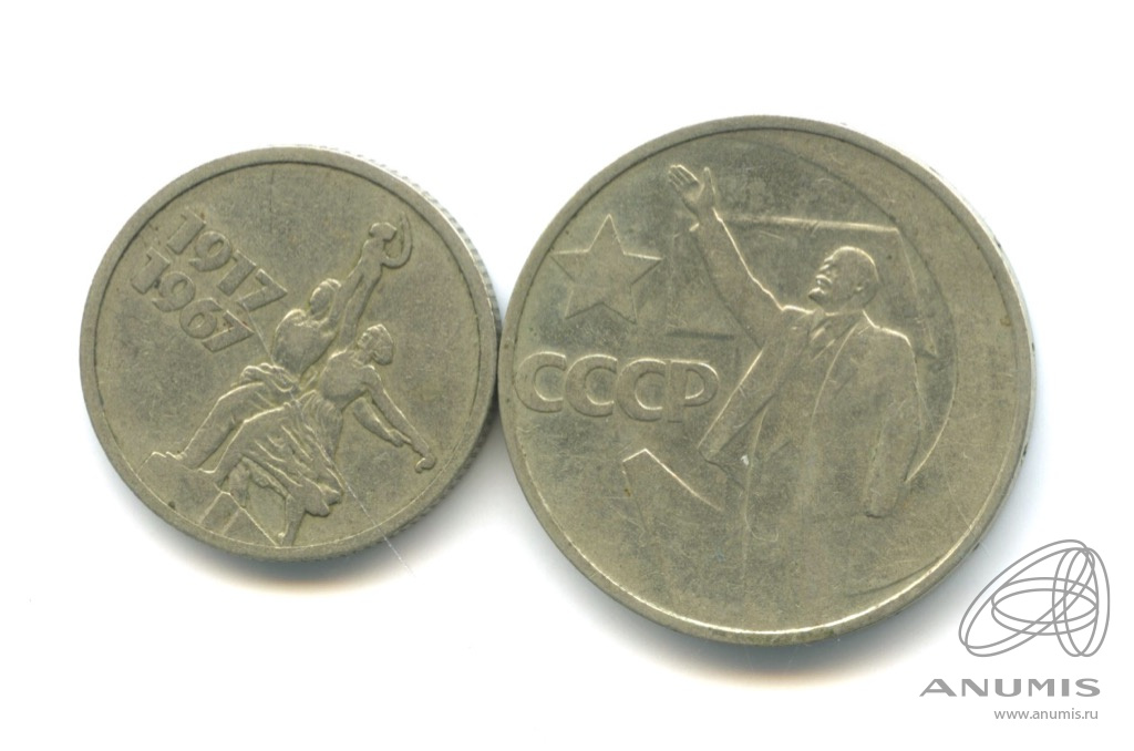 Лот монет «15, 50 копеек — 50 лет Советской власти». 2 шт