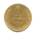 1 копейка — Без круговой надписи. Венок 7 лент 1935