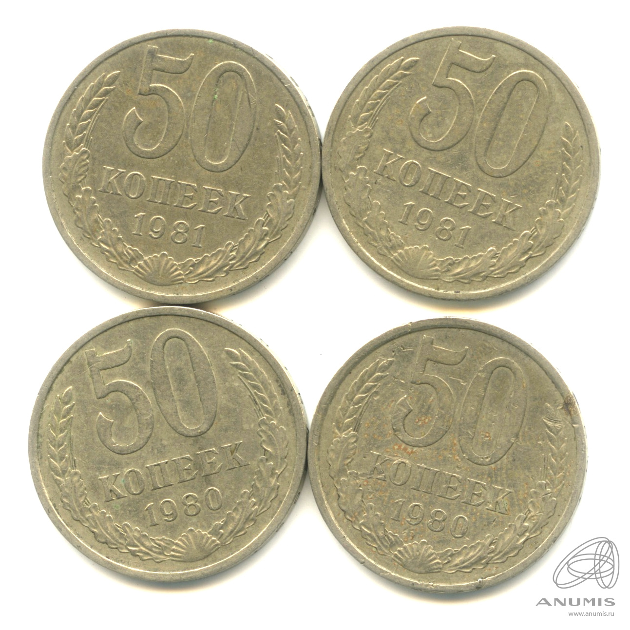 Лот монет «50 копеек». 4 шт