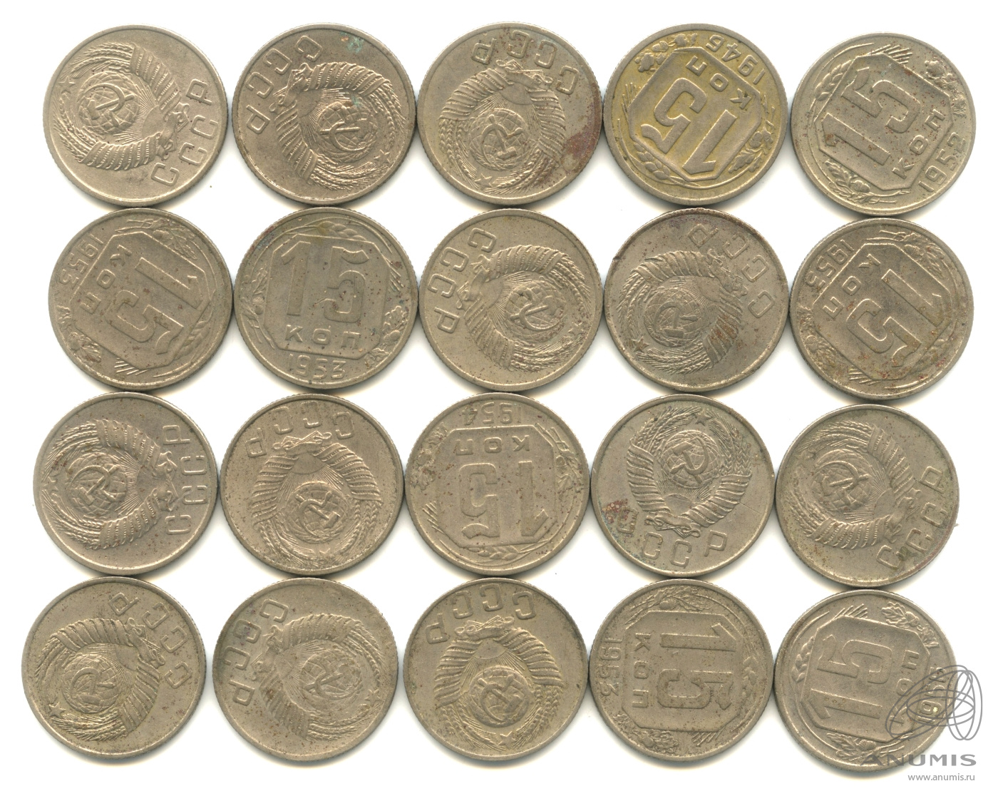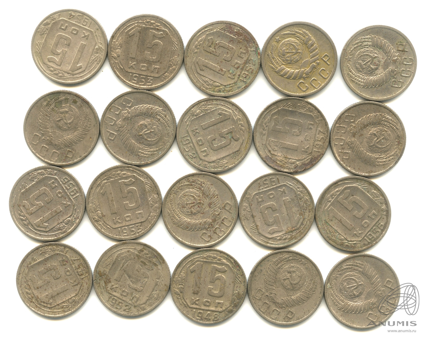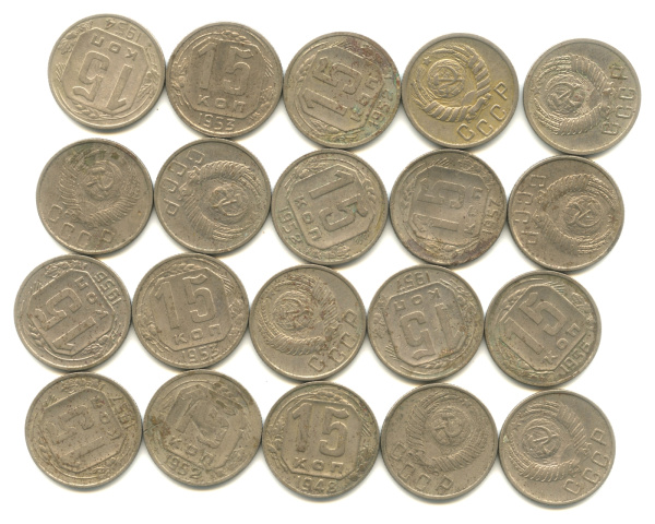 Лот монет «15 копеек». 20 шт