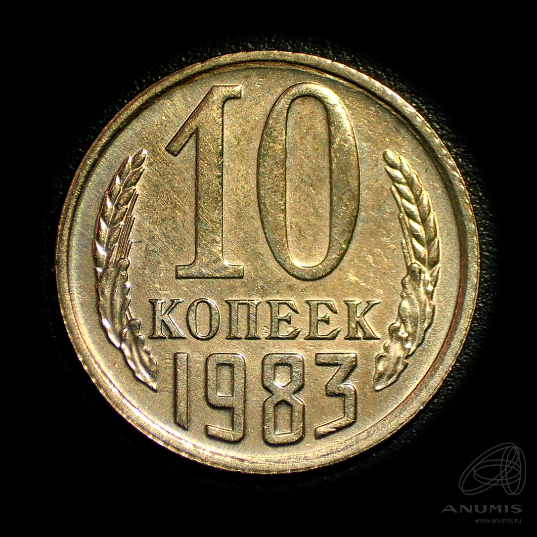 Монета регулярного выпуска: 10 копеек 1983 года. 10 копеек 1961 — 1991 гг. Союз Советских Социалистических Республик: СССР поздний (1961 — 1991). Медь-никель, 2 г, ø 17 мм, Гурт: Рубчатый.