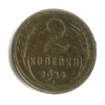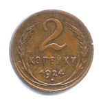 2 копейки — Гурт гладкий. На Николаевском кружке 1924 СССР»» |