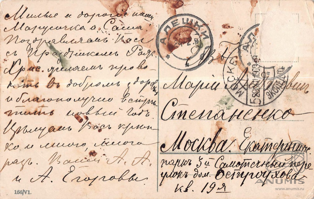 Российская империя. Открытое письмо. Поздравительная Почта: Алёшки-Москва