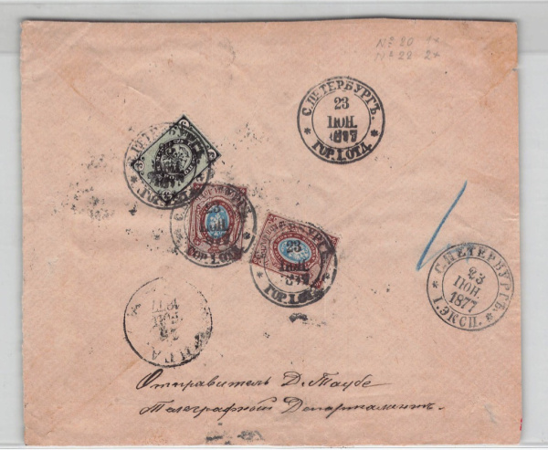 Российская империя. Реверс конверта. Телеграфный департамент. С. Петербург-Рига