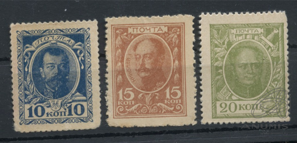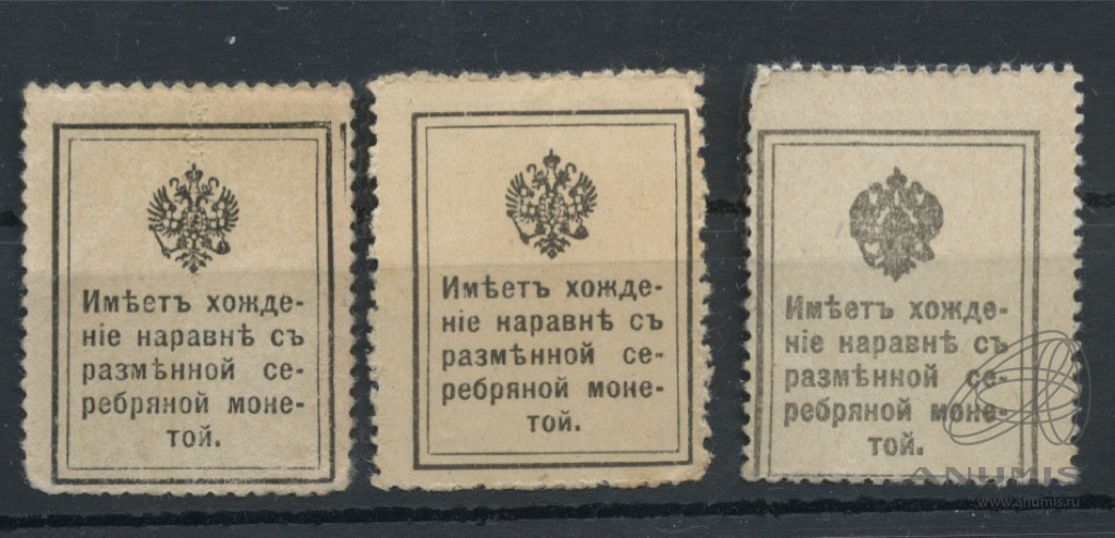 Серия негашёных марок-денег Первого выпуска 3 шт, **. полный комплект