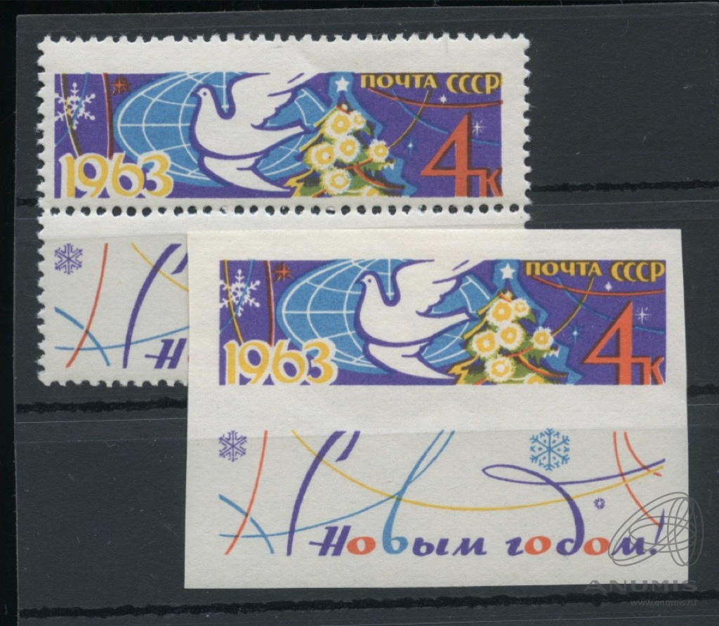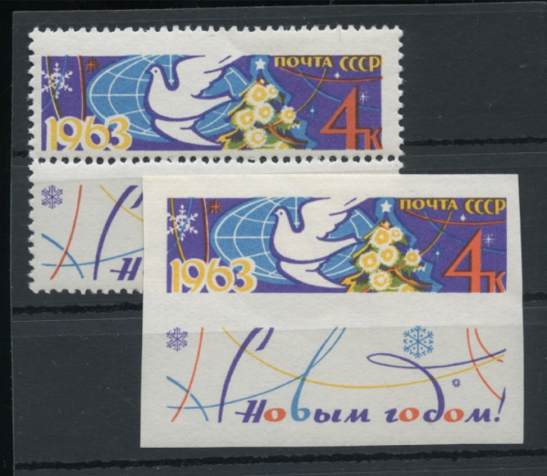 Серия негашёных марок «С Новым годом!» 2 шт, полный комплект, **. стоимость по каталогу Загорского ред.2023 г. = 350 руб. для **
