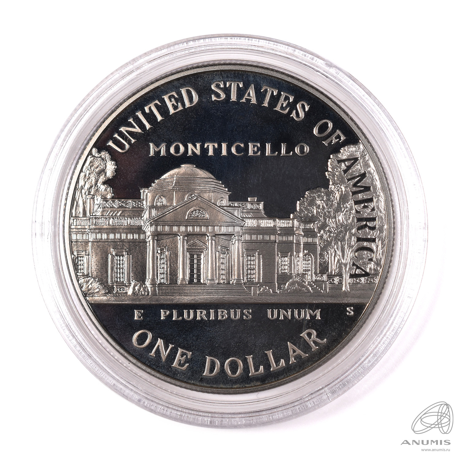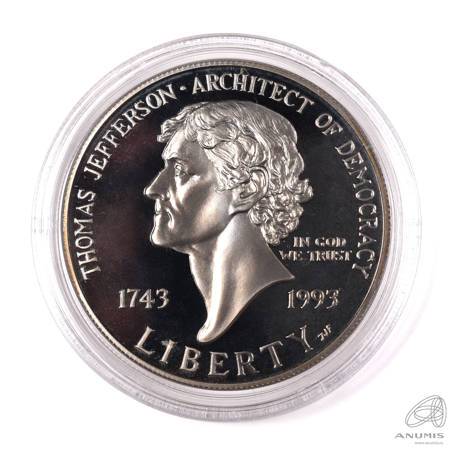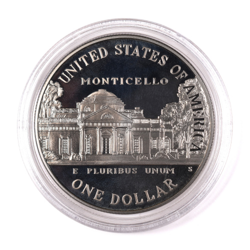 1 доллар — 250 лет со дня рождения Томаса Джефферсона 1993 S. В капсуле