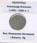 Полугрош (½ гроша) — Александр Ягеллончик, 1492−1506, Великое княжество Литовское Полугрош (½ гроша) — Александр Ягеллончик, 1492−1506, Великое княжество Литовское»» Ag 33 Mark2010 406