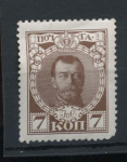 Негашёная марка 7 копеек «Николай II» серии «300-летие дома Романовых», **. стоимость по каталогу Загорского ред.2023 г. = 240 руб. для **