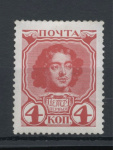 Негашёная марка 4 копейки «Пётр I» серии «300-летие дома Романовых», **. стоимость по каталогу Загорского ред.2023 г. = 480 руб. для **