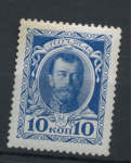 Негашёная марка 10 копеек «Николай II» серии «300-летие дома Романовых», **. стоимость по каталогу Загорского ред.2023 г. = 560 руб. для **