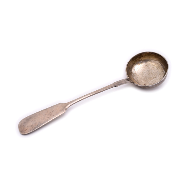 Антикварный серебряный половник. Длина 28 см. Серебро 84 пробы. 170,22 г (Российская Империя)