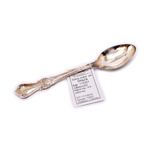 Набор кофейных ложек «Ольга». 6 штук. Производство «Ювеель», г. Таллин. Длина 13 см. Серебро 830 пробы. 88 г (Эстония)