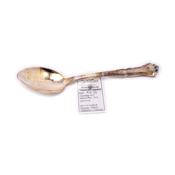Набор кофейных ложек «Чиппендейл». 6 штук. Производство «Ювеель», г. Таллин. Длина 13 см. Серебро 830 пробы. 119,4 г (Эстония)