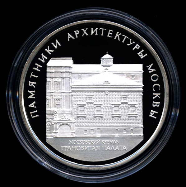 Медаль настольная «Памятники Архитектуры Москвы. Московский кремль. Грановитая палата». Серебро 999°. 2 унции (Россия)