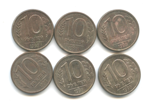 Лот монет «10 рублей — магнитные». 6 шт 1993 (Россия)