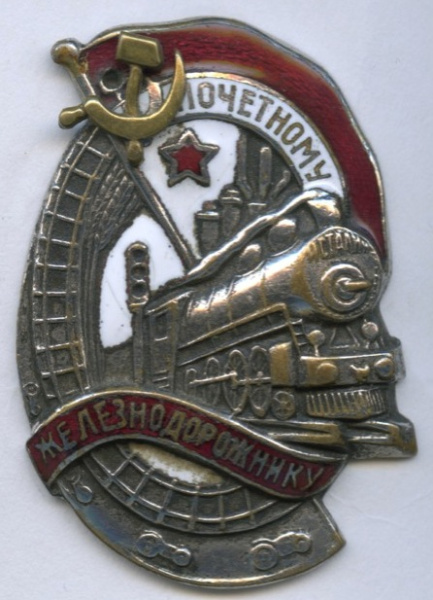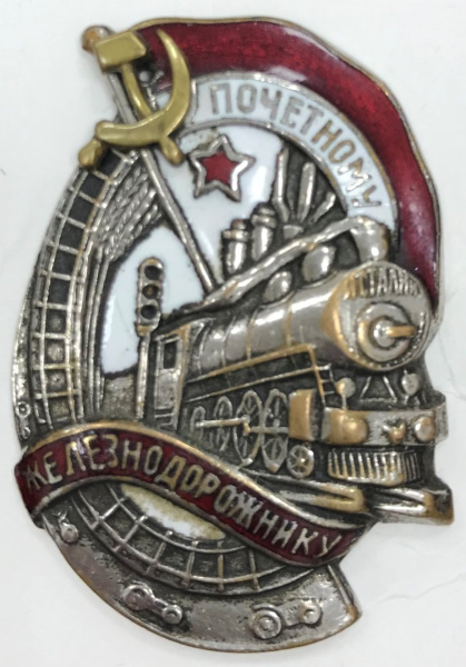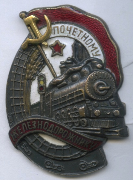 Знак «Почетному Железнодорожнику». Крепление: винт. Тяжелый, эмаль. оригинал состояние. номерной (СССР)