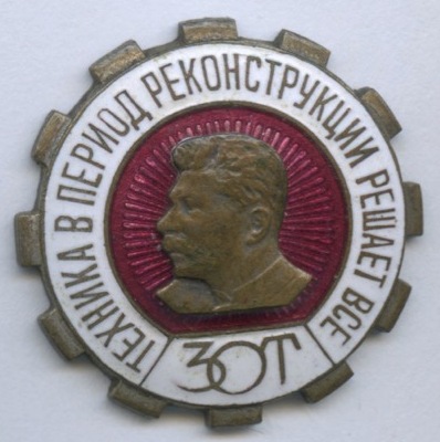 Знак «Техника в период реконструкции решает все 30Т». Крепление: винт. Тяжелый, эмаль. оригинал состояние. номерной (СССР)