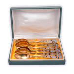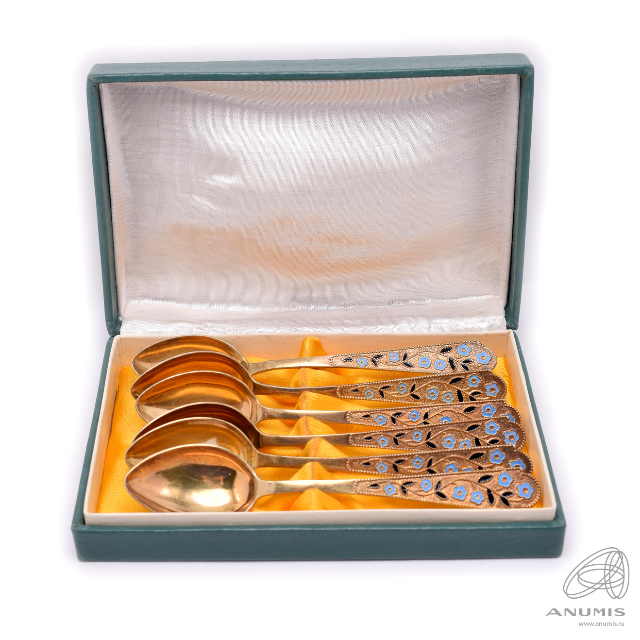 Набор из 6-ти чайных ложек в коробке. Эмаль. Длина 14,5 см. Серебро 875 пробы. 134,66 г
