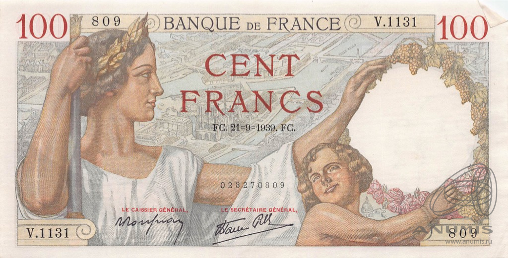 100 франков (Pick: # 94) 1939