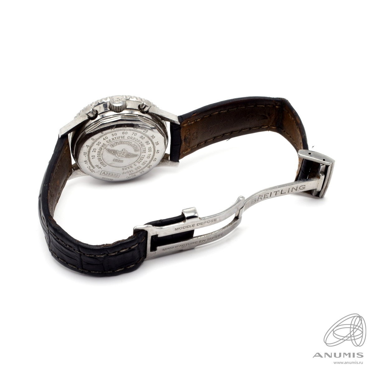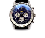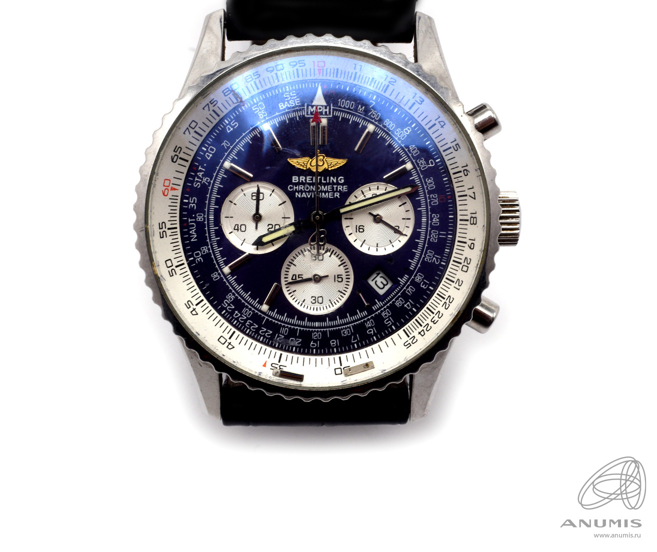 Часы наручные мужские модели «Breitling Navitimer World» с синим циферблатом и кожаным ремешком. ⌀ 4 см