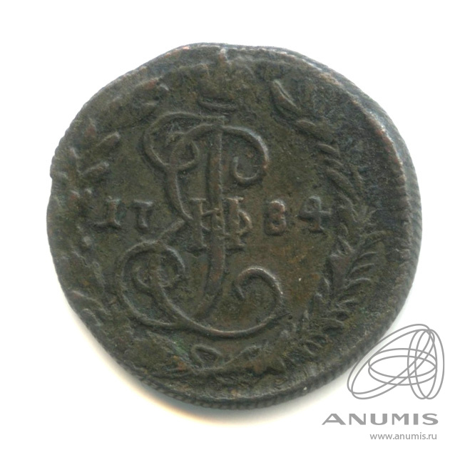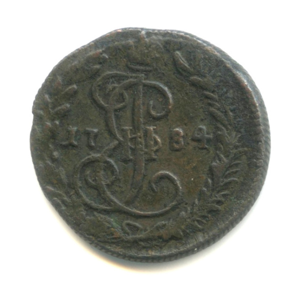 Монета регулярного выпуска: Деньга (½ копейки) 1784 года. Деньга 1764 — 1796 гг. Российская Империя: Екатерина II (1762 — 1796). Монетный двор: Колыванская медь/монета, с. Колывань, Алтайский край. Медь, 5 г, ø 21−24 мм, Гурт: Рубчатый.