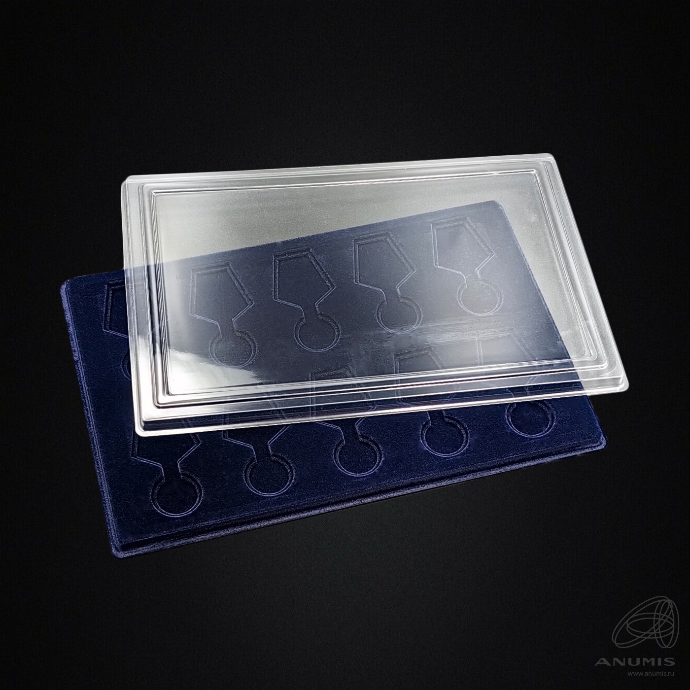 Планшет с крышкой для медалей на 10 ячеек на 39 мм. Размер 330×220×10 мм