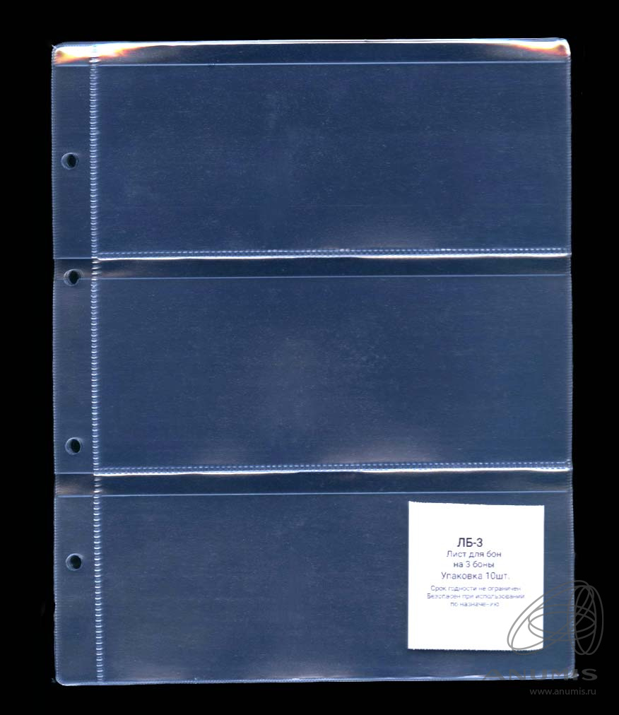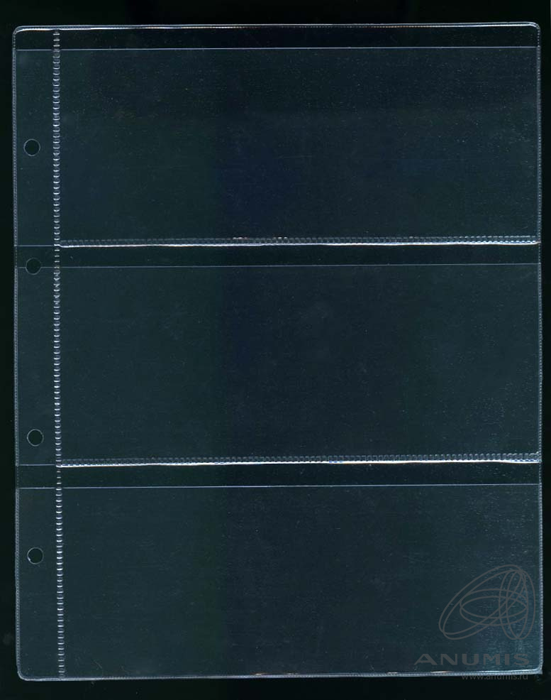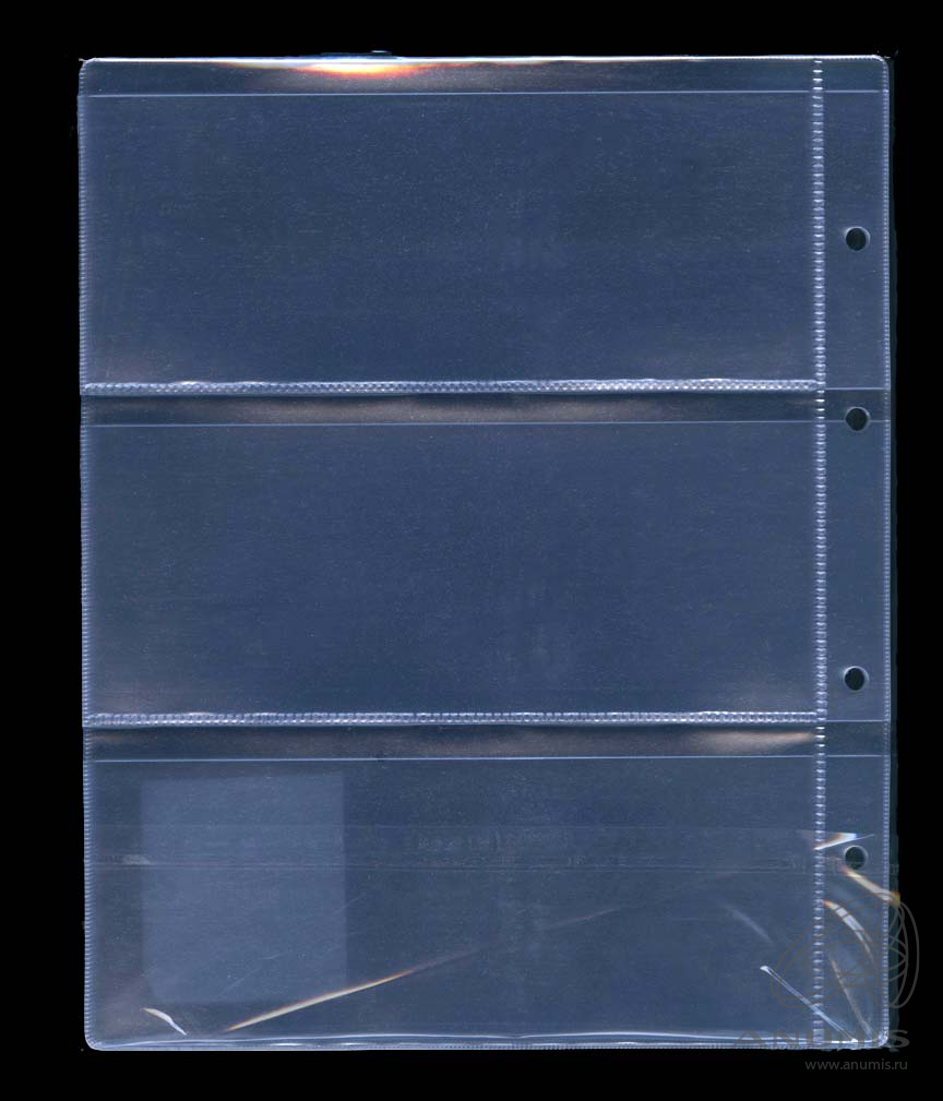 Листы для коллекционного материала в альбом Optima, на 3 банкноты (боны). Упаковка 10 шт. Размер 250×200 мм