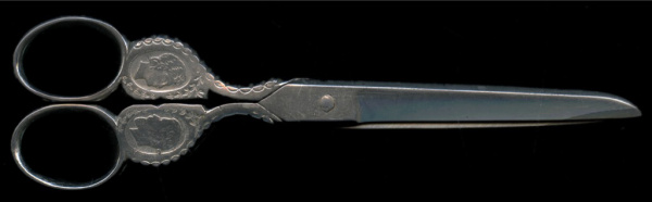 Ножницы коронационные с профилями Николая 2 и Александры Федоровны 19 век. 18×6 см, клеймо (на фото) (Российская Империя)