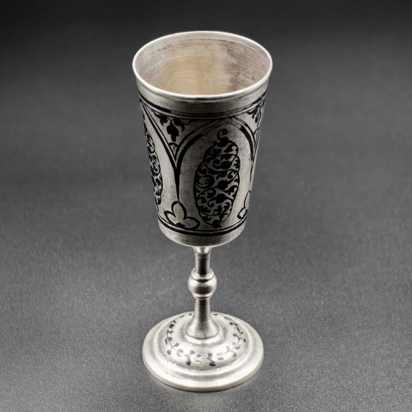 Рюмка. Высота 11 см., вес 52,1 гр. Клейма — 875 звезда, КХК — Кубачинский художественный комбинат. Гравировка, чернение. Состояние превосходное 1961 (…