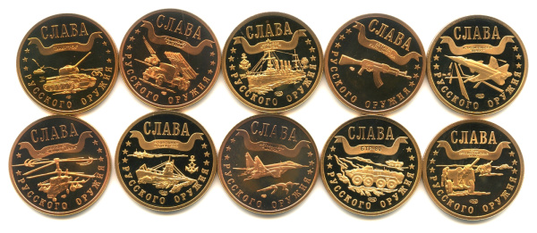 Лот жетонов «1 марка — Слава русского оружия». СПМД. 10 штук. В капсулах 2002−2004 2002-2004 (Россия)