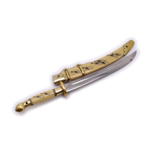 Китайская сабля Дао для писем и бумаг. Рукоять и ножны из кости. Клеймо мастера. Размер 14,5×1 см