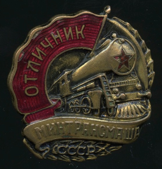 Знак «Знак Отличник МИНТРАНСМАШа СССР». Крепление: винт. Тяжелый, редкий, эмаль (СССР)