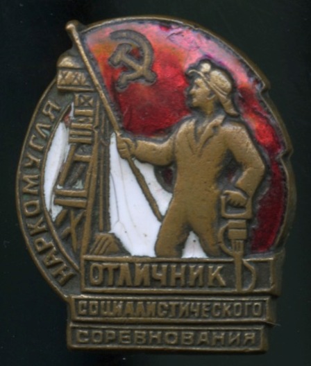 Знак «Знак Отличник соцсоревнования Наркомугля СССР». Крепление: винт. Тяжелый, редкий, эмаль (СССР)