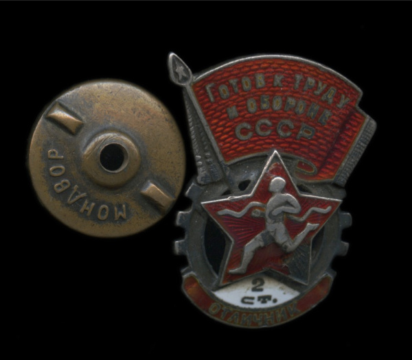 Знак «Отличник ГТО. 2 ступень». Мондвор. Крепление: винт. Тяжелый, эмаль. Номерной 1940 (СССР)