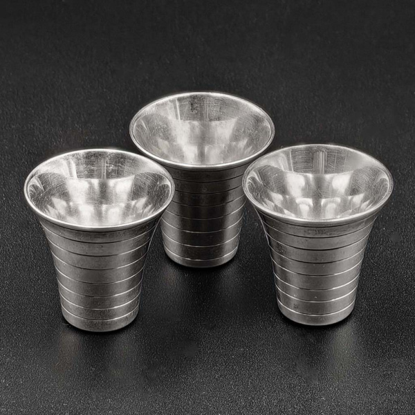 Стопки. Комплект 3 предмета. Клейма К. Ф 925 голова женщины. Высота 4,0 см., общий вес 86,7 гр. Кольчугино. Состояние отличное (СССР)