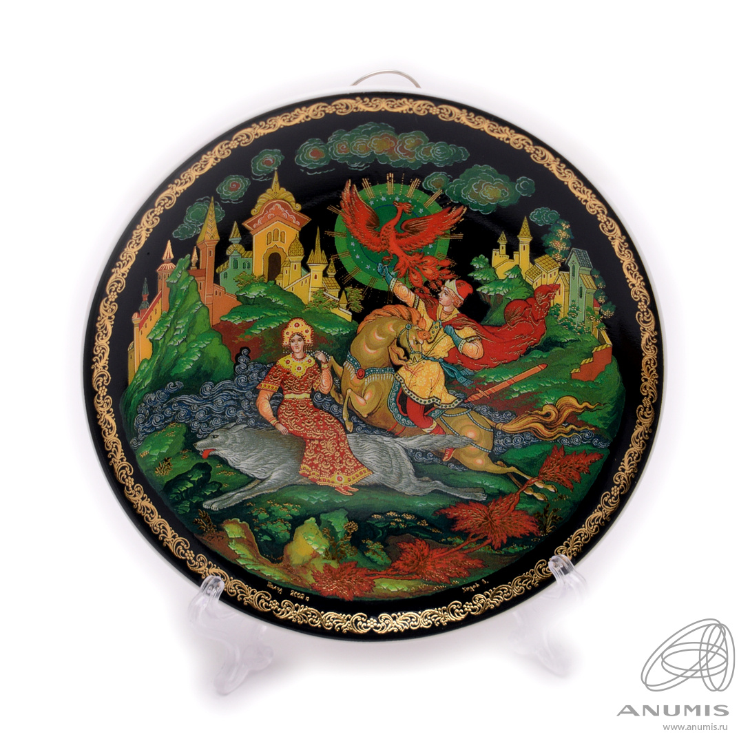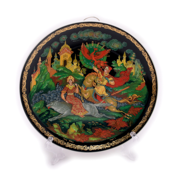 Тарелка настенная фарфоровая «Русские сказки в фарфоре, изготовлено на основе лакового оригинала. Палех». Размер 10,5×10,5 см. В упаковке