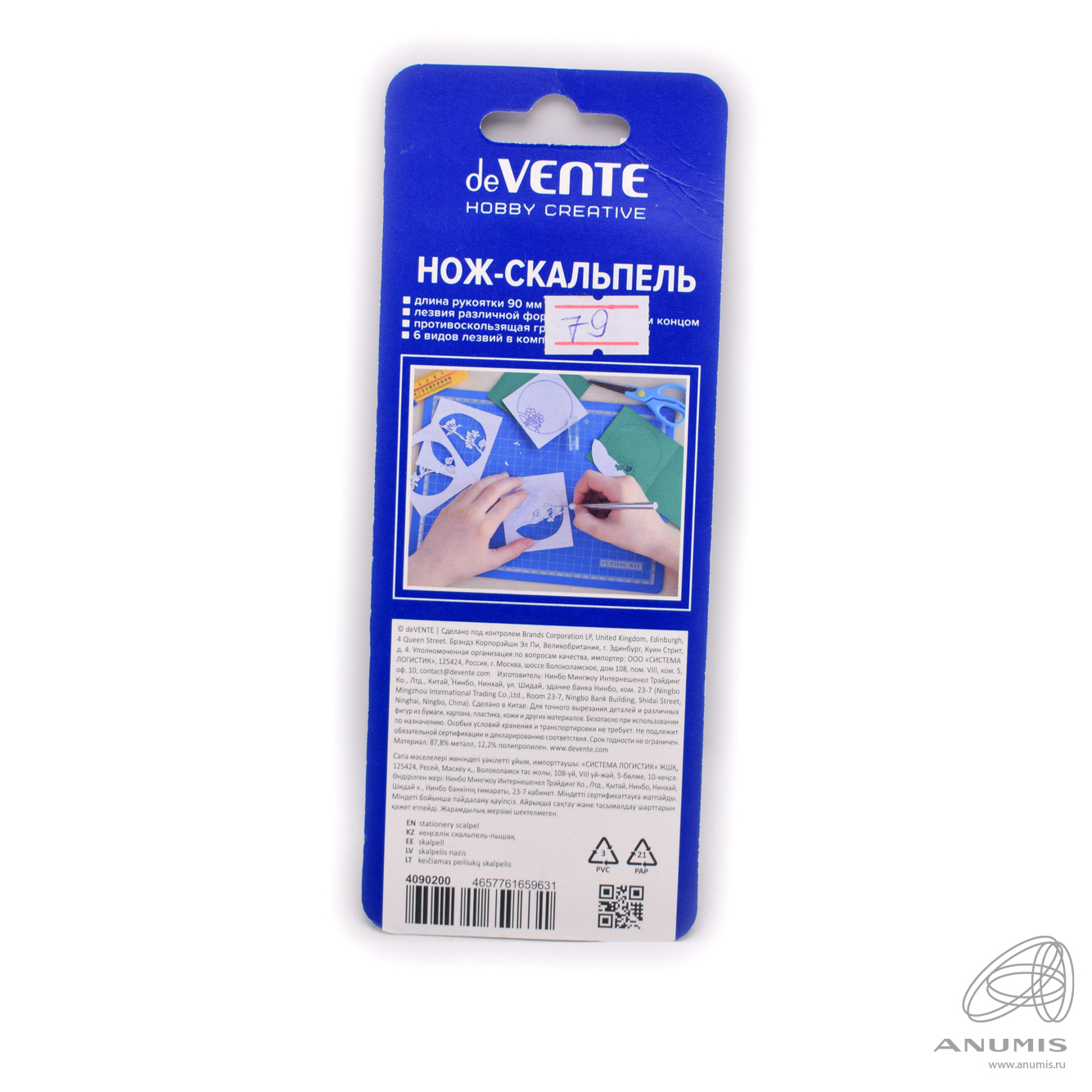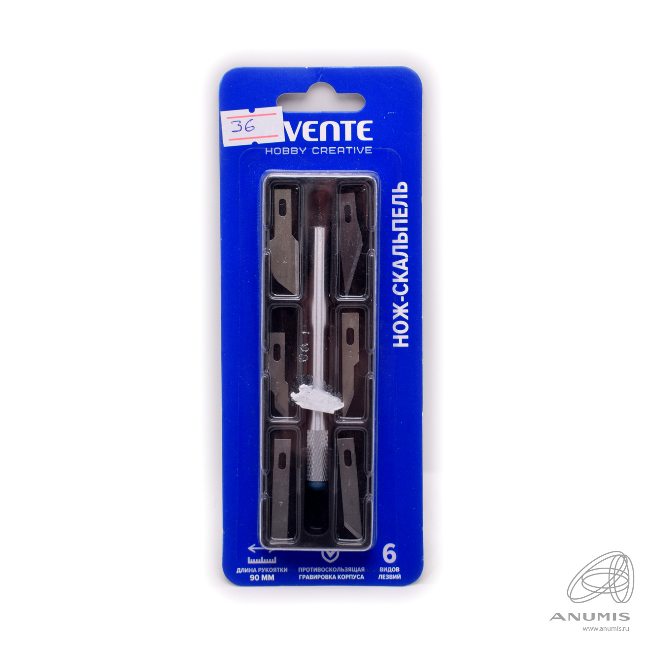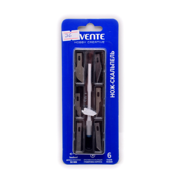 Нож-скальпель, длина рукоятки 90 мм. 6 видов лезвий. Упаковка. Размер 7×18 см