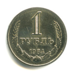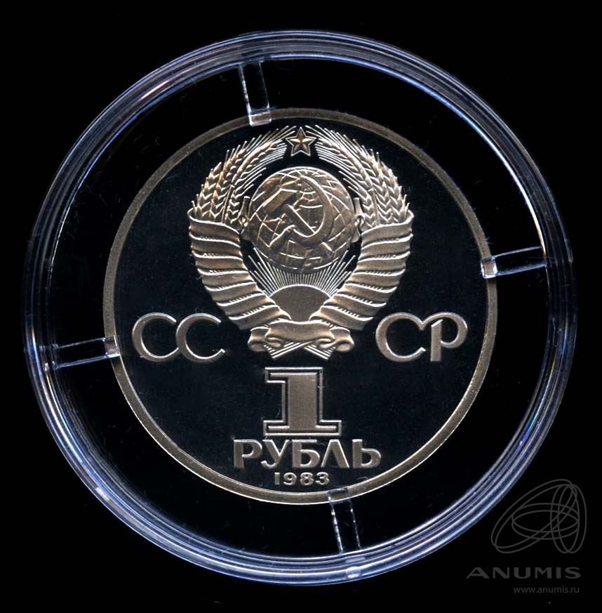 В верхней части изображение Государственного герба Союза Советских Социалистических Республик, по обеим сторонам которого, по две буквы с каждой стороны, надпись «СССР». В нижней части надписи: «1 РУБЛЬ», расположенная в две строки и обозначающая достоинство монеты, и «1983», обозначающая год чеканки. По окружности выступающий кант. Изображение и надписи рельефные.