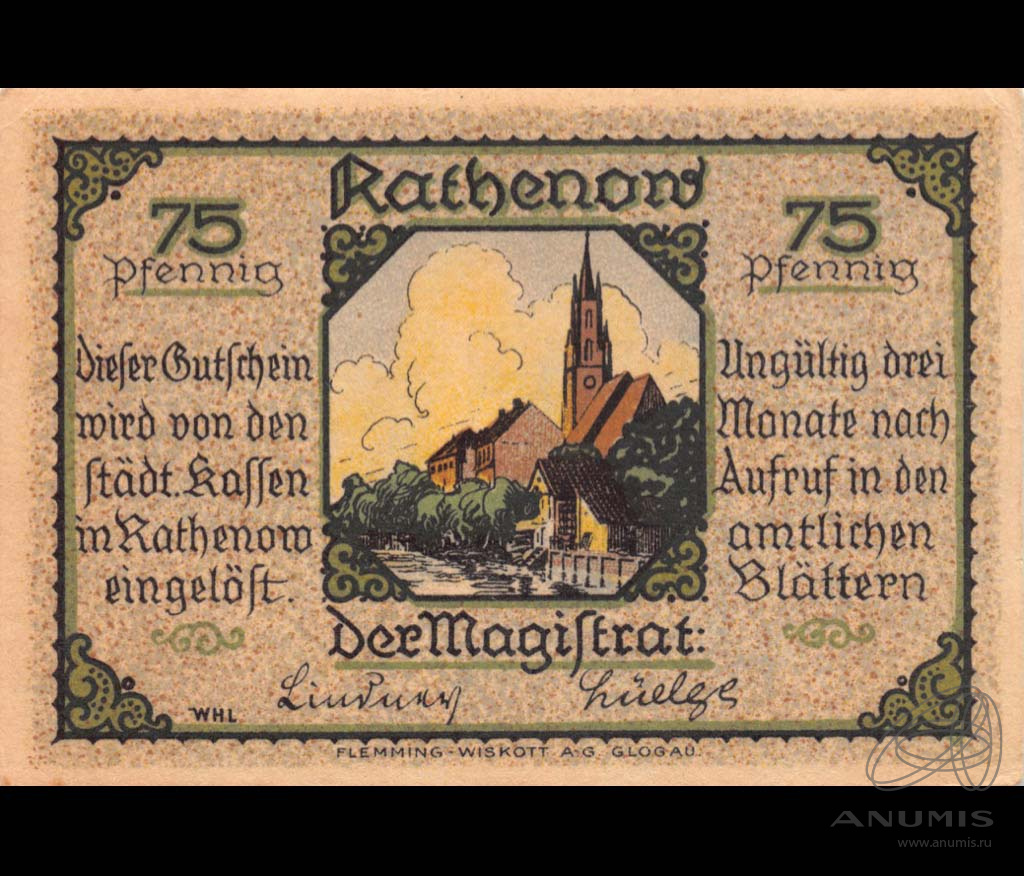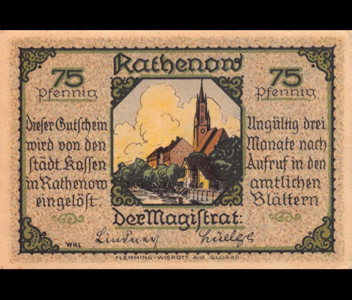 75 пфеннигов — Ратенов 1921. Экземпляр из крупной коллекции мирового уровня