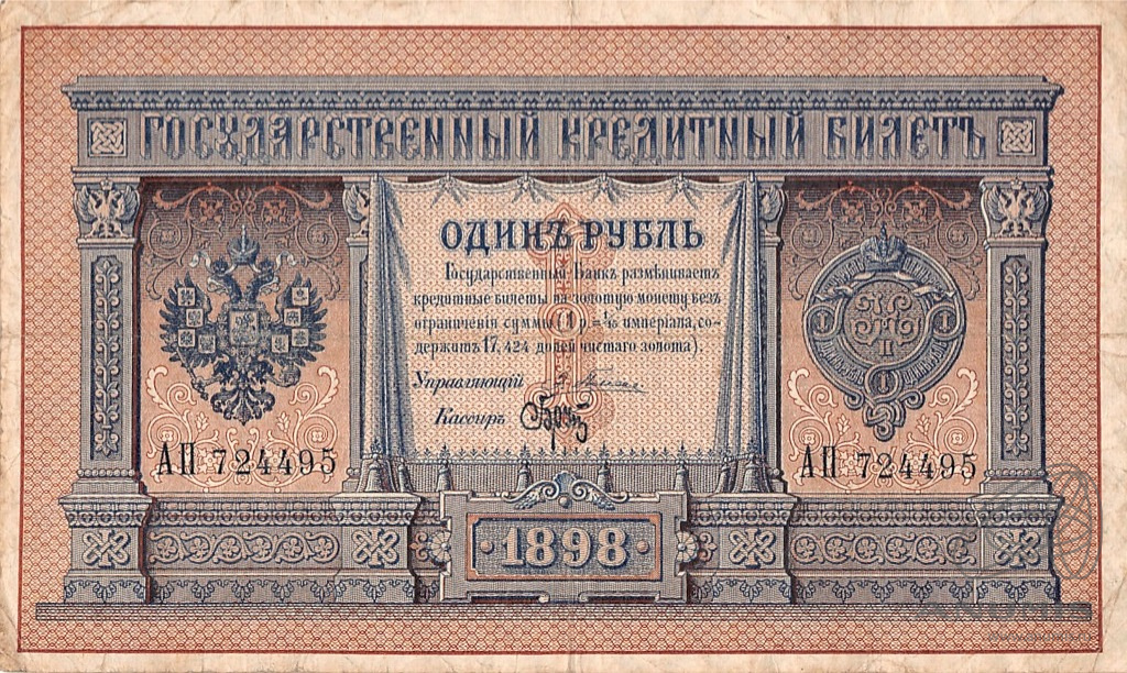 1 рубль 1898. Плеске / Брут. Так называемый «рубль висельника». Был необычайно популярен в начале 20 века. Коллекция Г. и Я. Абезгузов