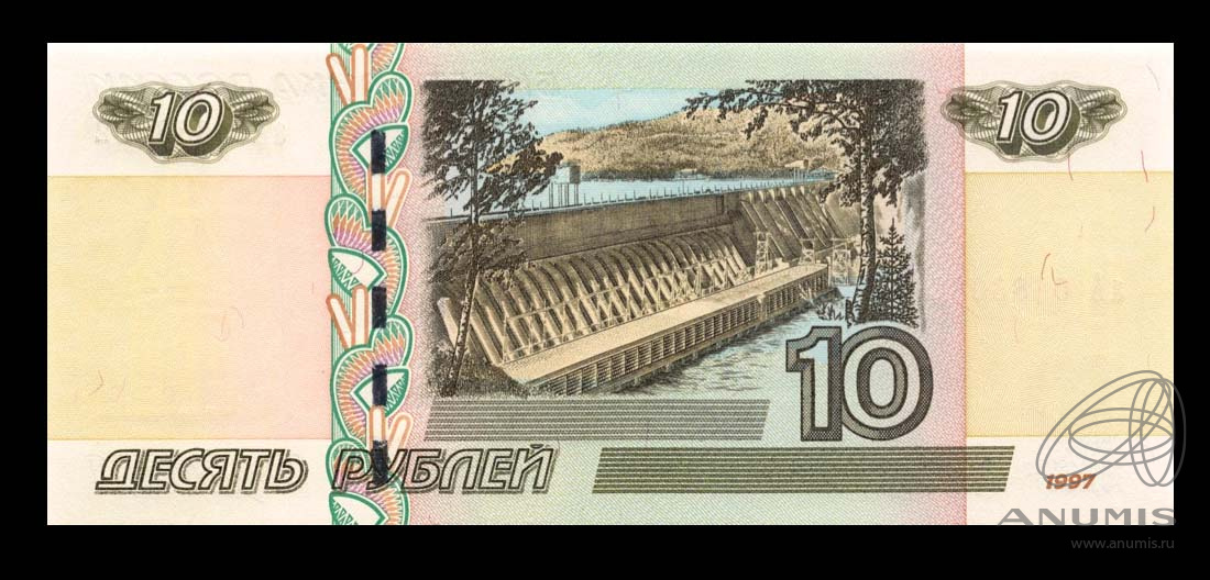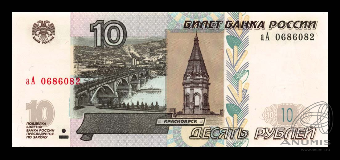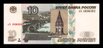 Банкнота регулярного выпуска: 10 рублей 2004 года «обр. 1997». Билеты Банка России 1997 г. Модификация 2004 г. Российская Федерация: Россия современная (1997 — 2020).