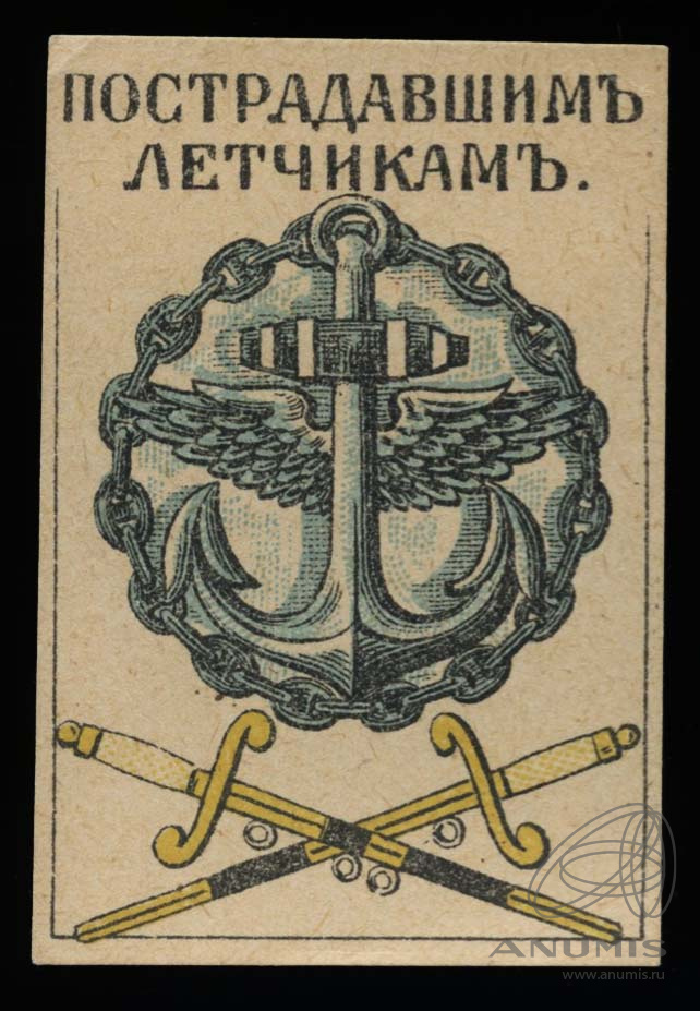 Марка непочтовая благотворительная «Пострадавшим лётчикам» Первая Мировая война ®. Чрезвычайно редкая 1916