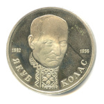 Юбилейная монета: 1 рубль 1992 года «110-летие со дня рождения Янки Купалы». 1 рубль 1992 — 1993 гг. «Молодая Россия». Российская Федерация: Банк России (1992 — 1996). Медь-никель, 13 г, ø 31 мм, Гурт: Надпись. Тираж: 400000 шт.