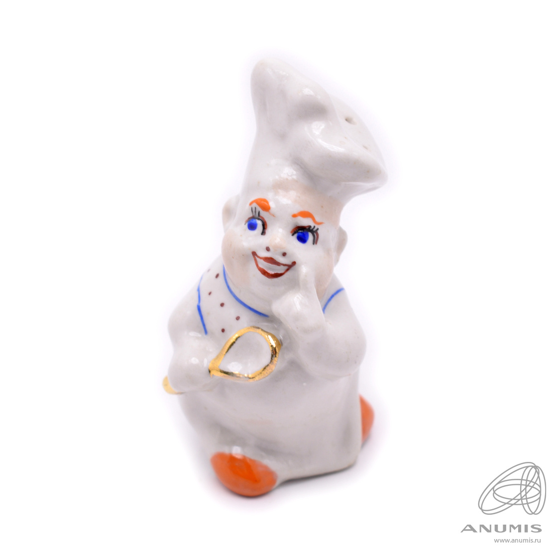 Солонка фарфоровая «Повар». Золочение. Размер 5×9 см. Без дефектов