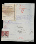Квитанция от 1918 года издательства «Северная Коммуна» и заявление от 1918 года. С гербовыми марками