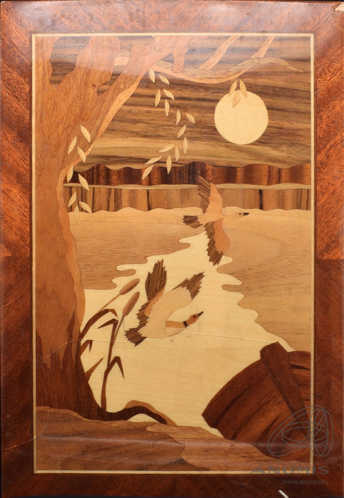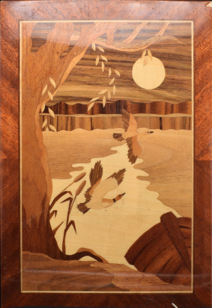 Панно декоративное в технике маркетри «Пейзаж». С дарственной табличкой на обороте. Размер 29×42 см