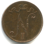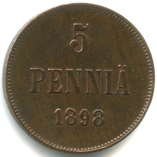 5 пенни — Для Финляндии. Вензель Николая II 1898