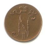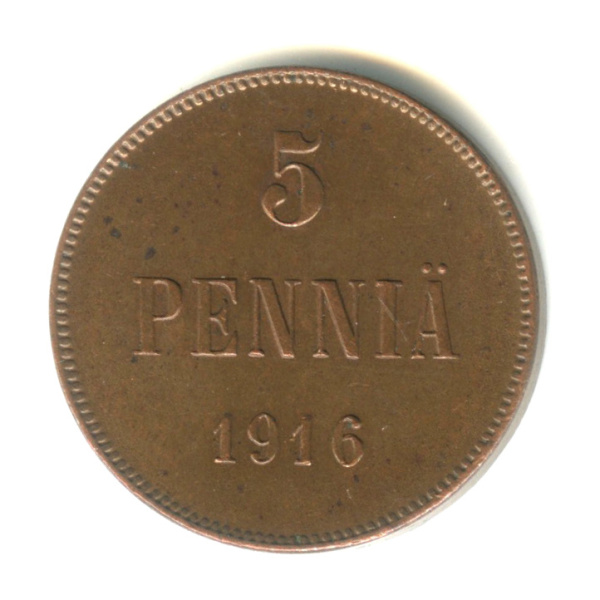 5 пенни — Для Финляндии. Вензель Николая II 1916