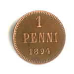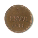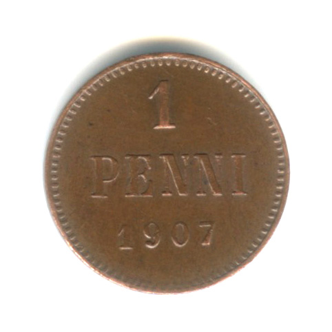 1 пенни — Для Финляндии. Вензель Николая II 1907